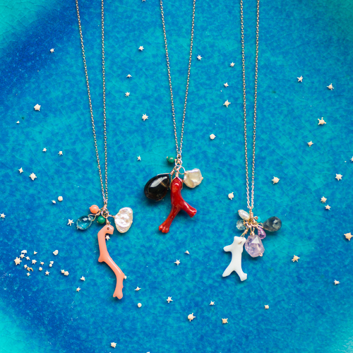 珊瑚と天然石を組み合わせることで、珊瑚の新たな魅力を